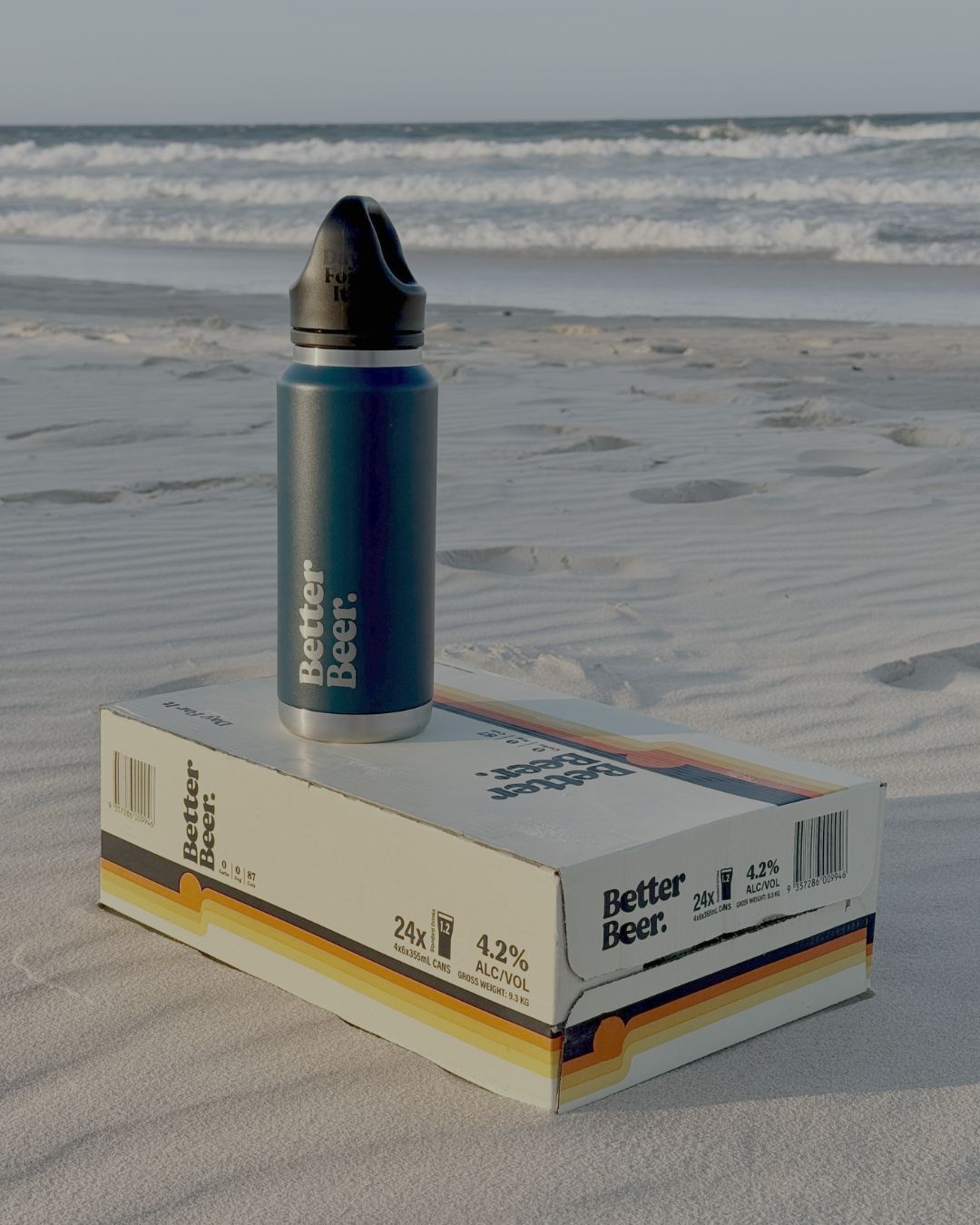 - Navy powder coating with a laser engraved 'Better Beer' logo on the body and 'Day For It' logo on the lid
